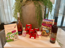 Wer noch auf der Suche nach einem außergewöhnlichen Präsent ist, wird ganz bestimmt bei der Touristinformation im Servicecenter „H7“ fündig. Dort gibt es neben handgemachten Duschpralinen in ansprechender Herzform aus lokaler Herstellung auch verschiedene Liköre und Schnäpse.