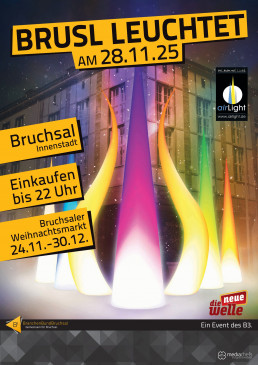 Schon jetzt ist „Brusl leuchtet“ aus Bruchsal nicht mehr wegzudenken. Wenn viele Lichter, Lampen und leuchtende Skulpturen die Innenstadt in warmes, festliches Glühen tauchen, beginnt in Bruchsal die schönste Zeit des Jahres.