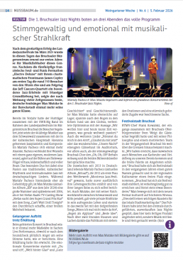 Auch Nussbaum Medien war vor Ort – und hat für die Mitteilungsblätter der Region über die Bruchsaler Jazz Nights berichtet sowie ein Interview geführt. Wie bereits in der Weingartener Woche eindrucksvoll zu sehen war, wenn lokale Ereignisse journalistisch begleitet und in Szene gesetzt werden, bringt der regionale Medienpartner Geschichten und Stimmen aus der Stadt direkt zu den Leserinnen und Lesern.